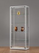 Glasvitrine LED-Beleuchtet auf Schiene stufenlos verstellbar 2x Drehtür 800(B)x400(T)x1984(H)mm SILBER