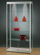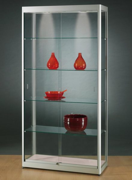 Glasvitrine Standard LED-Beleuchtet mit 2x Schiebetür 1000(B)x400(T)x2000(H)mm SILBER