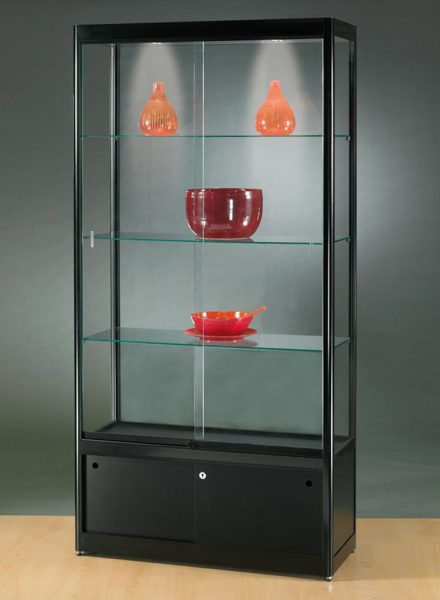 Glasvitrine Standard LED-Beleuchtet mit 2×2 Schiebetüren und Unterschrank 1000(B)x400(T)x2000(H)mm SCHWARZ