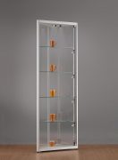 Aluminium Profil 24mm viertel keis, Unteres- und oberes Profil 40mm, Rundum ESG-Sicherheitsglas, Drehtür aus ESG-Sicherheitsglas mit Zylinderschloss, 1 x 7 Watt Powerled in Decke, Halogenbeleuchtung auf Schiene stufenlos verstellbar, Boden und Decke aus melaminierter Platte, Fachböden stufenlos verstellbar, Fertig montiert